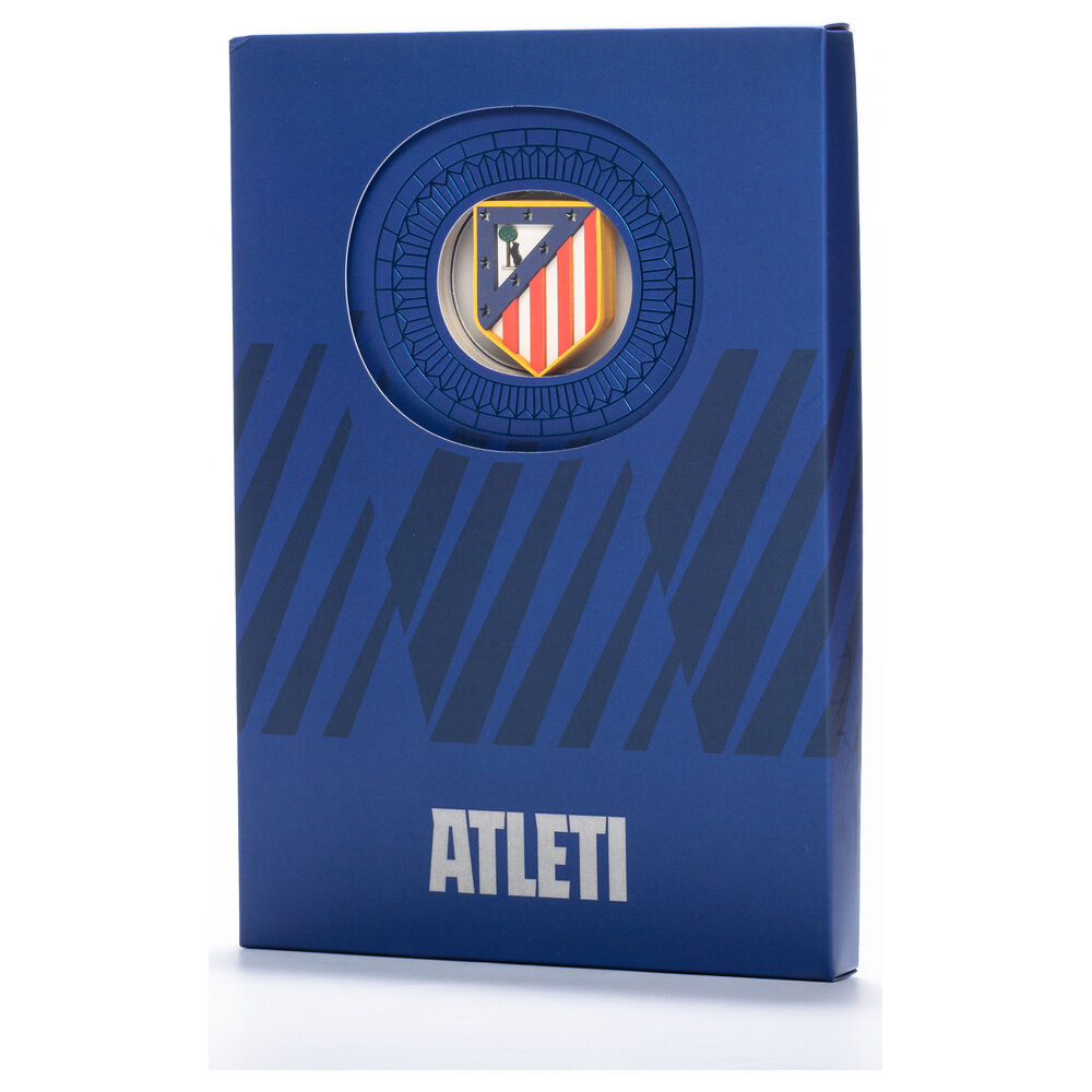 Atlético Madrid notebook with 3D crest. Textile spine binding and quality finishes. 120 blank pages. Colour: blue. Size: A6. Its three-dimensional cover features the club's official crest in relief, crafted with precision to reflect the history, courage and strength that characterise Atleti. Each sheet is individually die-cut using laser technology. It also comes in a red box with official Atlético de Madrid packaging, enhancing its value as a collector's item or exclusive gift.