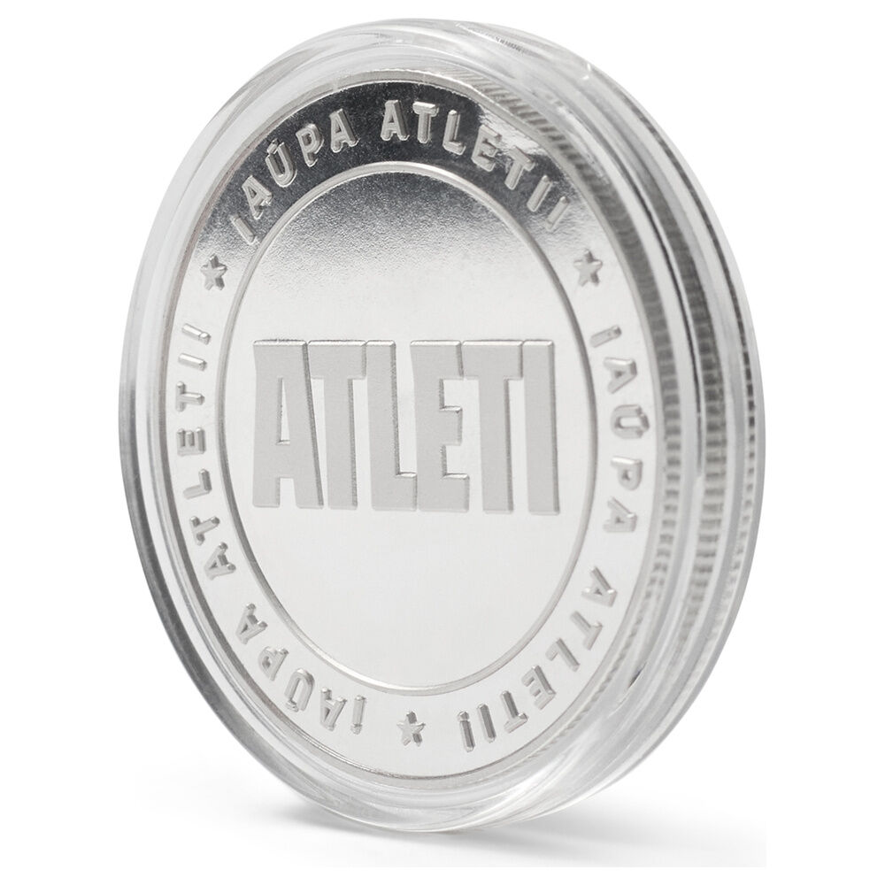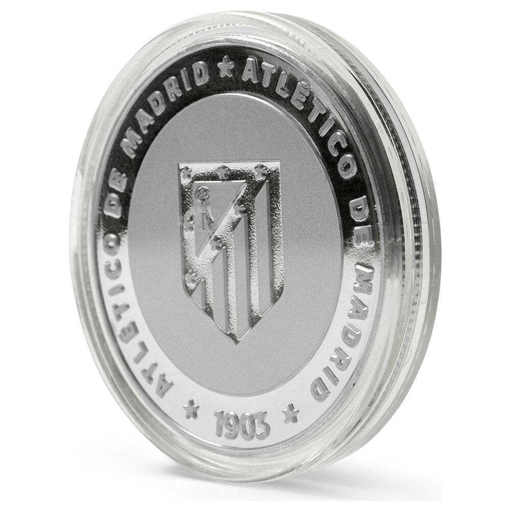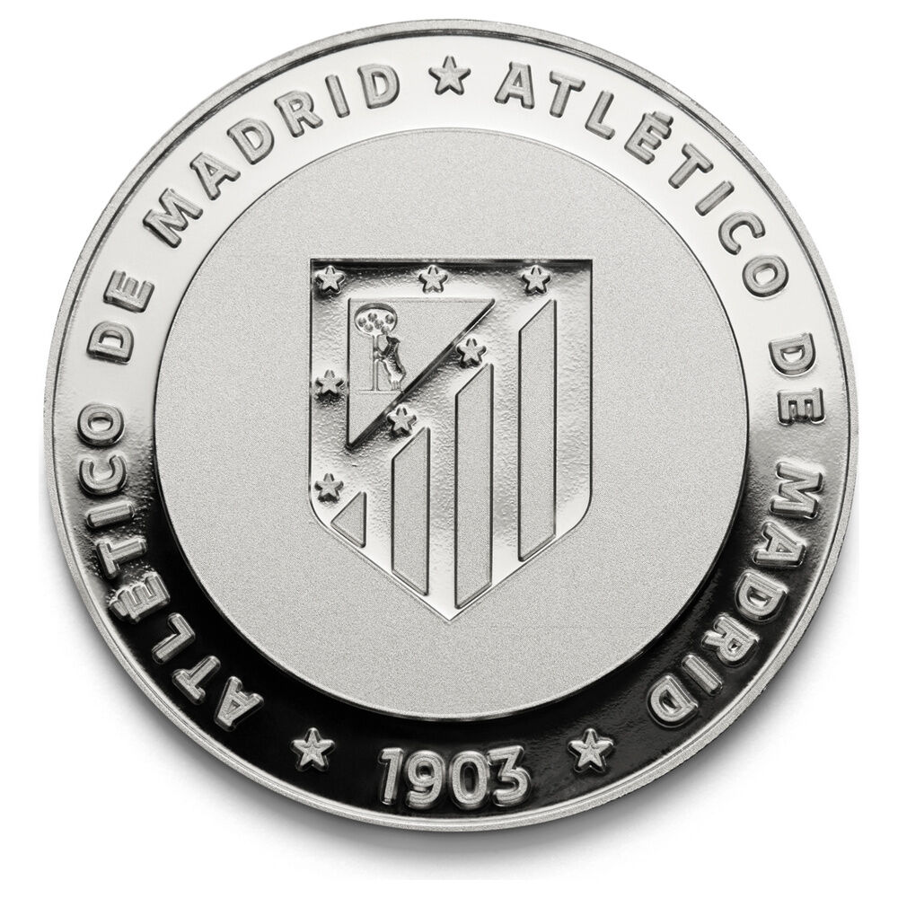 Show your colours with the Atlético de Madrid commemorative silver coin. Made of zinc alloy (zamak) with a silver finish and embossed on both sides, it comes protected in an acrylic capsule (Ø 4.5 cm) inside an individual collector's box. Coin dimensions: Ø 4 cm (approx. thickness 0.6 cm). Collector's item with no face value.