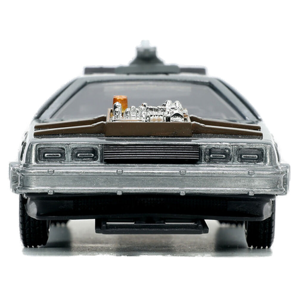 Scale: 1:32. Faithful to the original model with metal bodywork and silver paint; includes all the characteristic details of the vehicle of the future adapted to the style of the Old West, with realistic components and a premium finish. Gull-wing doors and free-spinning wheels; the iconic doors open to reveal the interior of the car, while the free-moving system allows for easy display or play.