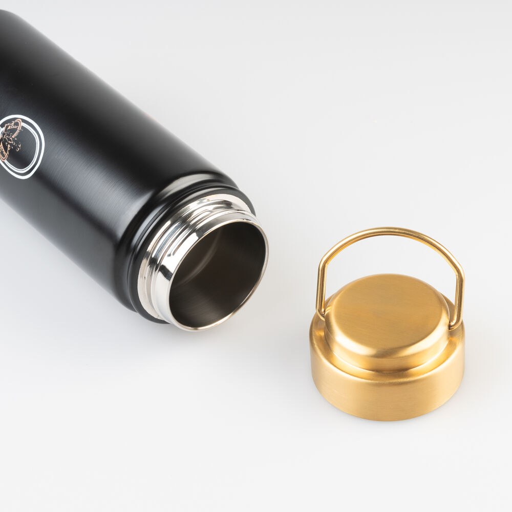 Capacidad: 500ml. Fabricada en acero inoxidable. Incluye tapón hermético con asa.