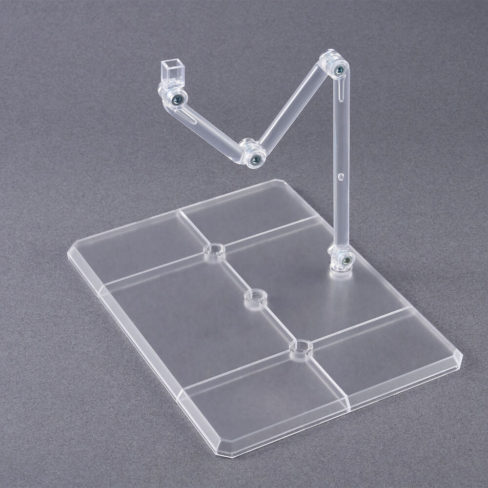 Type: Display stand. Colour: Clear. Compatible Scales: Heavy-weight figures. Description: A stand designed to support heavy-weight model kits, such as Master Grades with extensive equipment. Includes 2 bases and 2 support arms.
