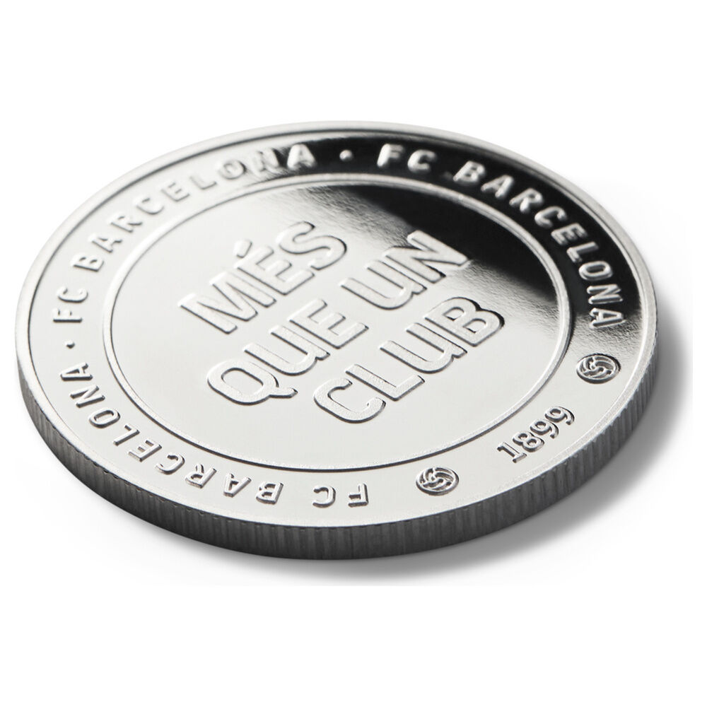 Experience the spirit of the club with the Official FC Barcelona Coin, More than a Club, in silver finish. Made of zinc alloy (zamak) and embossed on both sides, it comes protected in an acrylic capsule (Ø 4.5 cm) inside an individual collector's box. Coin dimensions: Ø 4 cm (approx. thickness 0.6 cm). Collector's item with no face value.