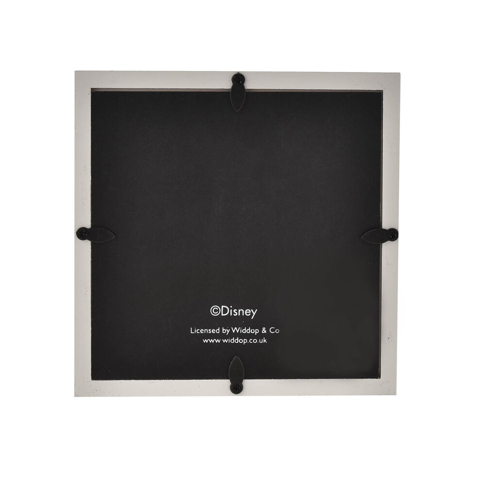La caja de madera para ventanas tiene un acabado pintado en blanco, completado con una adorable ilustración de Bambi y Tambor en estilo lápiz, junto con una ranura para monedas en la parte superior. En el panel trasero extraíble hay una frase que dice Big things start small escrita con letras doradas brillantes, con un fondo de nubes y estrellas en colores pastel.