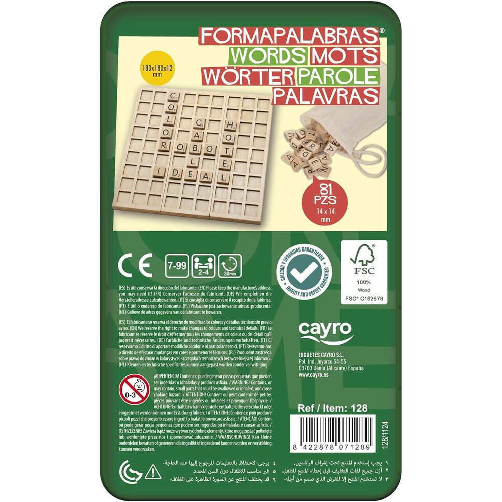 Edad: +7 años. El formapalabras es un juego de palabras cruzadas en el que se combinan: el azar en la toma de letras y la habilidad de componer palabras para obtener la máxima puntuación: ésta depende de la posición y el valor.