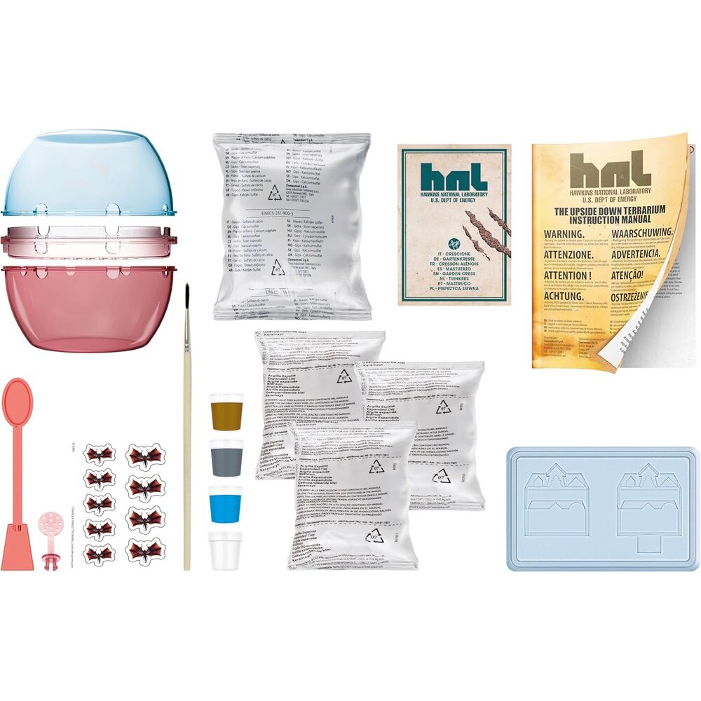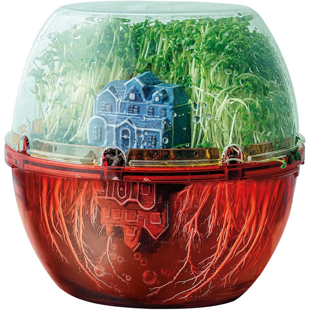Edad: +7años. Tamaño: 35x26x7cm. Un juego que combina botánica y creatividad. Las plantas se cultivan en hidroponía y las raíces crecen gradualmente hasta sumergirse en el fondo de color rojo. El kit contiene todos los accesorios, como un recipiente, semillas, arcilla, yeso, plantillas y témperas para recrear la espeluznante escena.