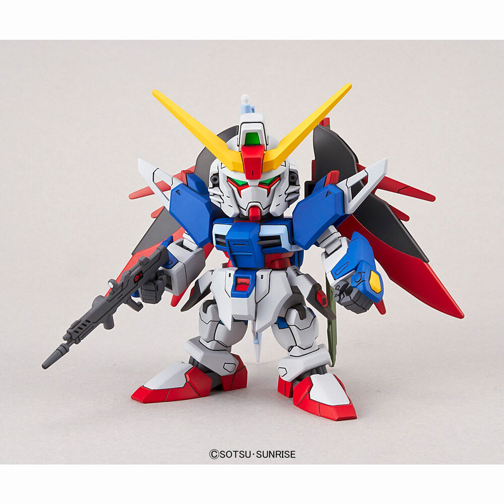 Grade/Line: Super Deformed (EX-Standard). Materials: PS, PE. Series: Mobile Suit Gundam SEED Destiny. Contents: Instruction manual. Compatibility: Action Base 2, 4 and 5, SD line stickers, and combinable parts with other EX-Standard. Description: Shinn Asuka's advanced mobile suit, equipped for close and long-range combat with power, mobility, and iconic armament.