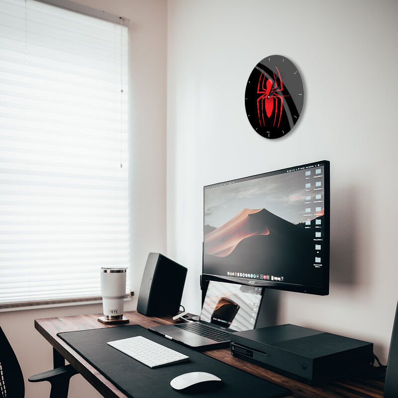 Glossy, reflective coating on the watch face. Elegant lacquered metal hands. Silent, floating clock mechanism. Diameter 30.5cm. Power supply with one AA battery (not included). Bracket for convenient wall hanging.
