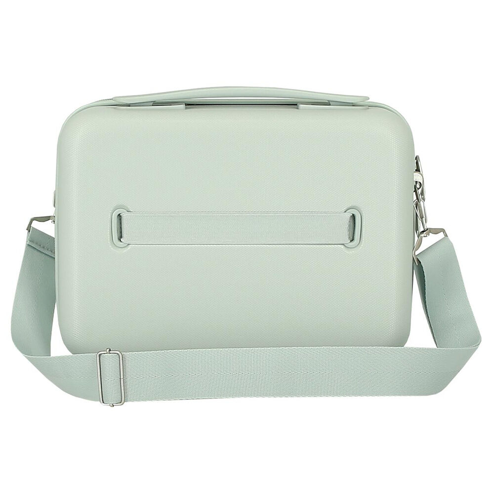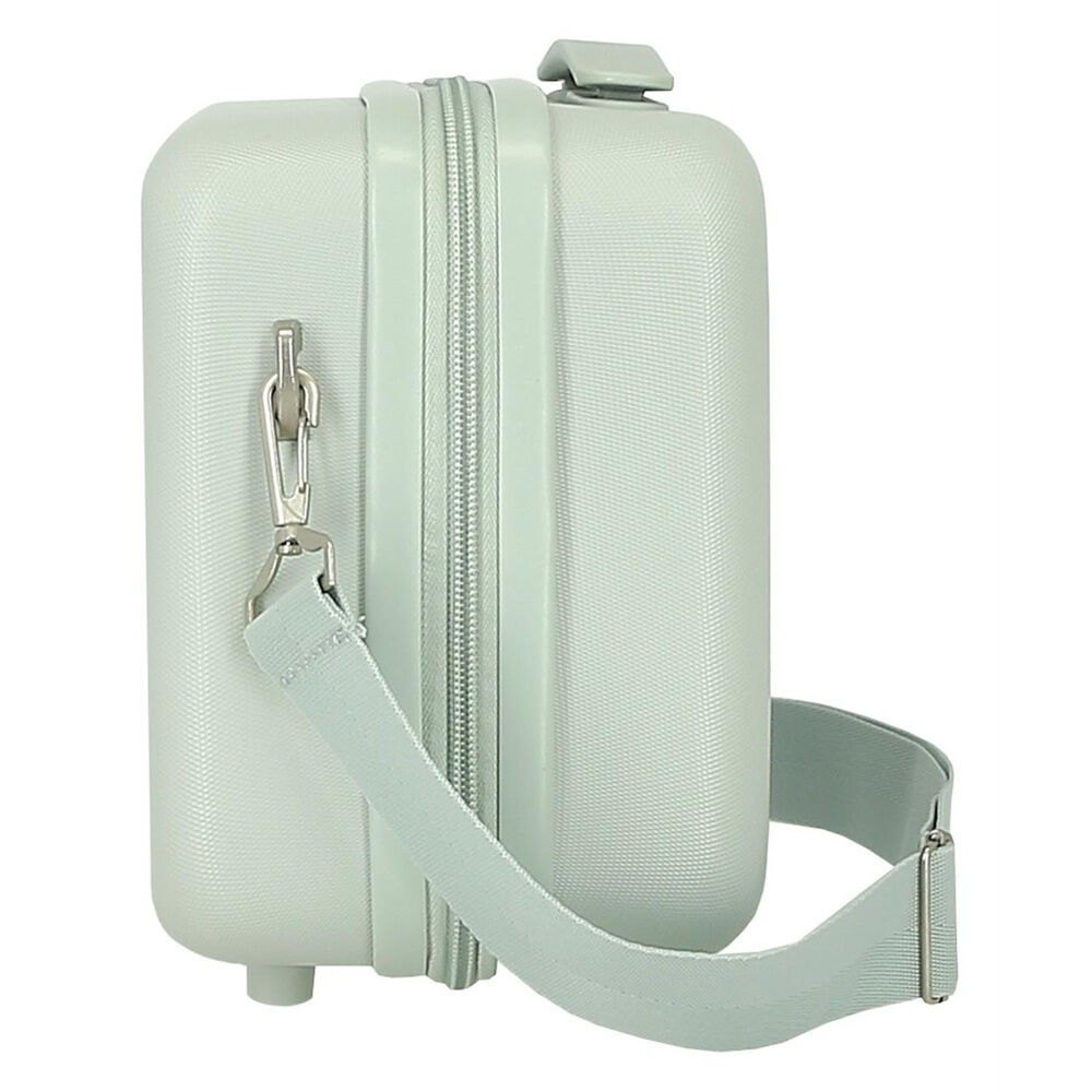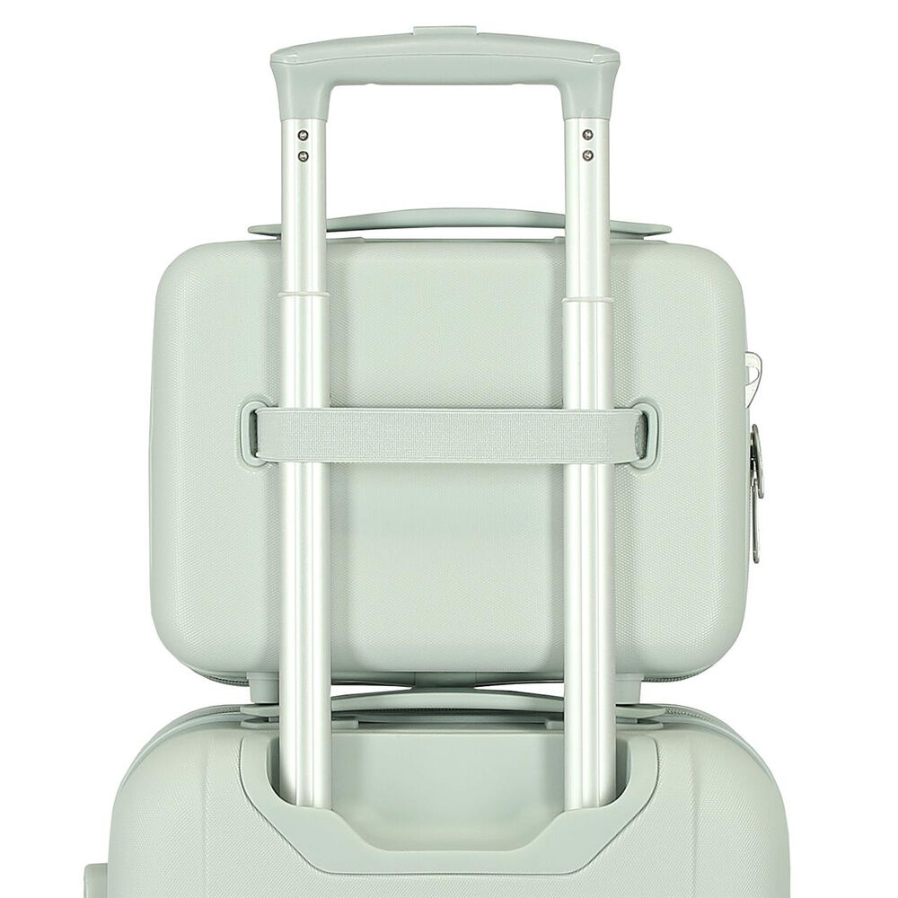 Neceser rigido de material ABS, con correa adaptable y banda elastica para adaptarlo a la maleta trolley.