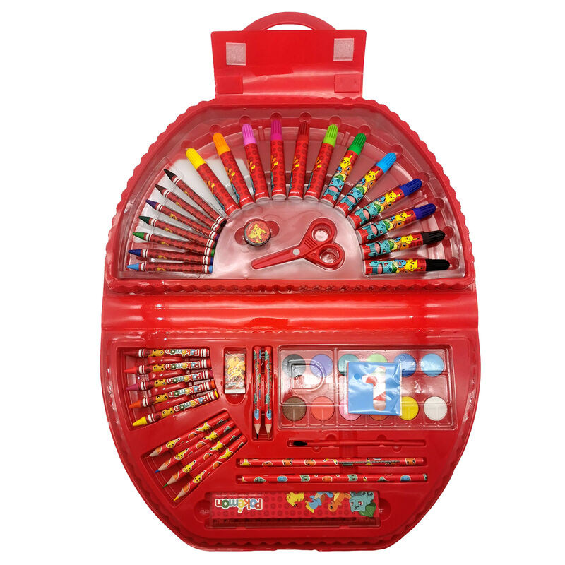 Size: 38x21x4cm. With this original activity set in a briefcase you can keep all your school supplies organised. Inside it includes several artistic and stationery accessories: a ruler, a pencil sharpener, an eraser, scissors, a paintbrush and 6 outlining stencils. There are also 12 watercolours, 12 felt-tip pens, 6 coloured pencils and 12 crayons.