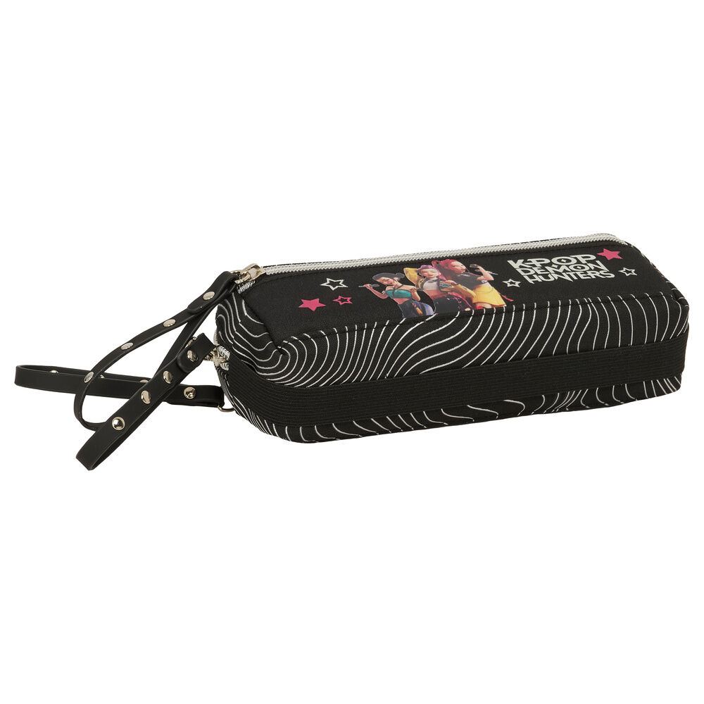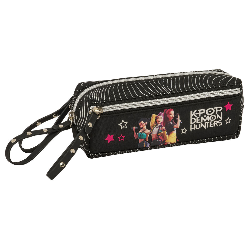 Las guerreras K-pop. Tamaño: 22x6x8,5cm. Tres compartimentos con cremallera. Con goma elástica trasera para acoplarlo al cuaderno o carpeta.