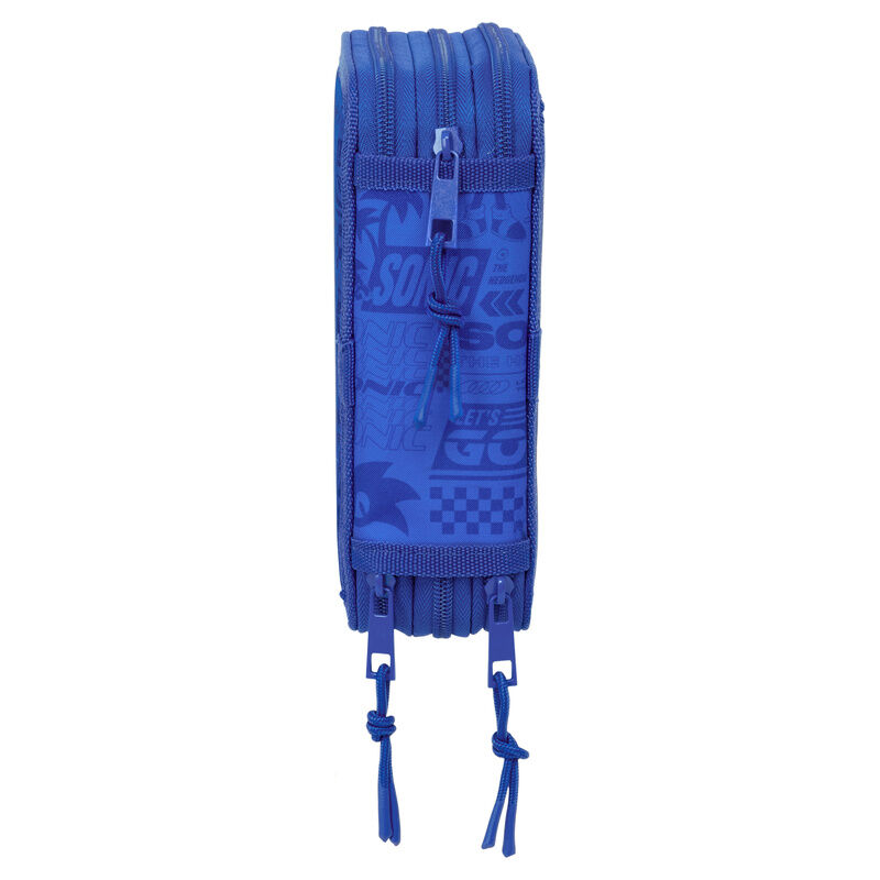Size: 12.5 x 5.5 x 19.5 cm. Contains 37 pieces: rubber, graphite pencil, blue-red pen, pencil sharpener, engraved blue ruler, and semicircle (first compartment), 16 wooden coloured pencils (second compartment). 14 coloured markers (third compartment).