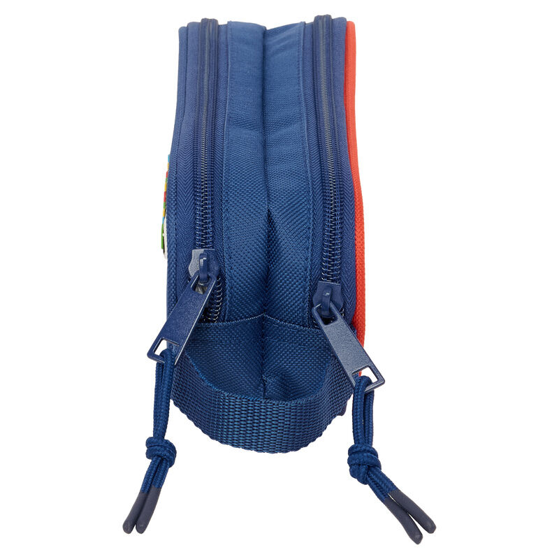 Size: 21x6x8cm. Two separate compartments with zips. Handle on the side.